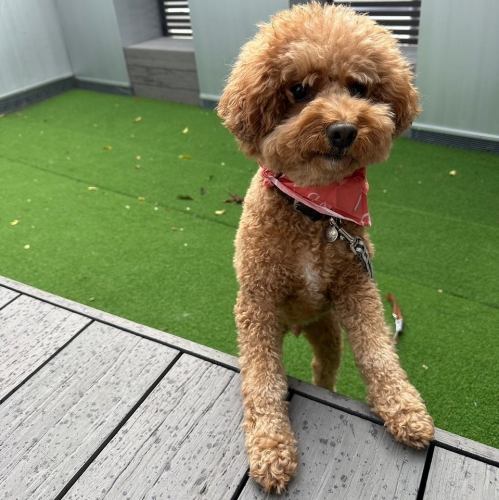 テラスに併設のドッグテラス!ワンちゃんも楽しめるスペースでお食事やカフェをお楽しみください。芝生内はマナーパンツの着用は必須とさせていただきます。ルールを守ってご使用ください。テラスをご利用でワンちゃん連れのお客様はお電話でのご予約をお願いいたします。
